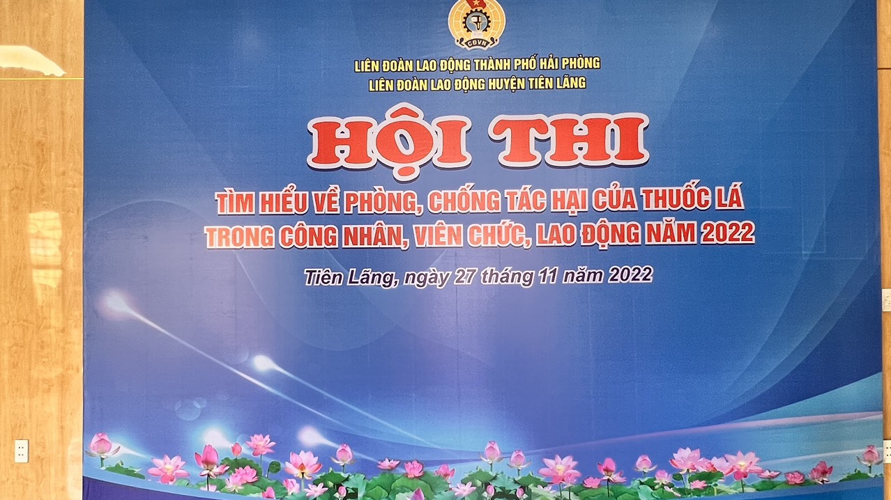 Thực hiện kế hoạch 192/KH-LĐLĐ ngày 28/02/2022 của LĐLĐ thành phố; thực hiện sự chỉ đạo của BTV LĐLĐ Thành phố về tổ chức Hội thi phòng chống tác hại của thuốc lá trong CNVC-NLĐ năm 2022. Sáng ngày 27/11/2022, LĐLĐ huyện Tiên Lãng đã tổ chức Hội thi " Tìm hiểu về phòng chống tác hại của thuốc lá trong công nhân, viên chức và người lao động năm 2022".