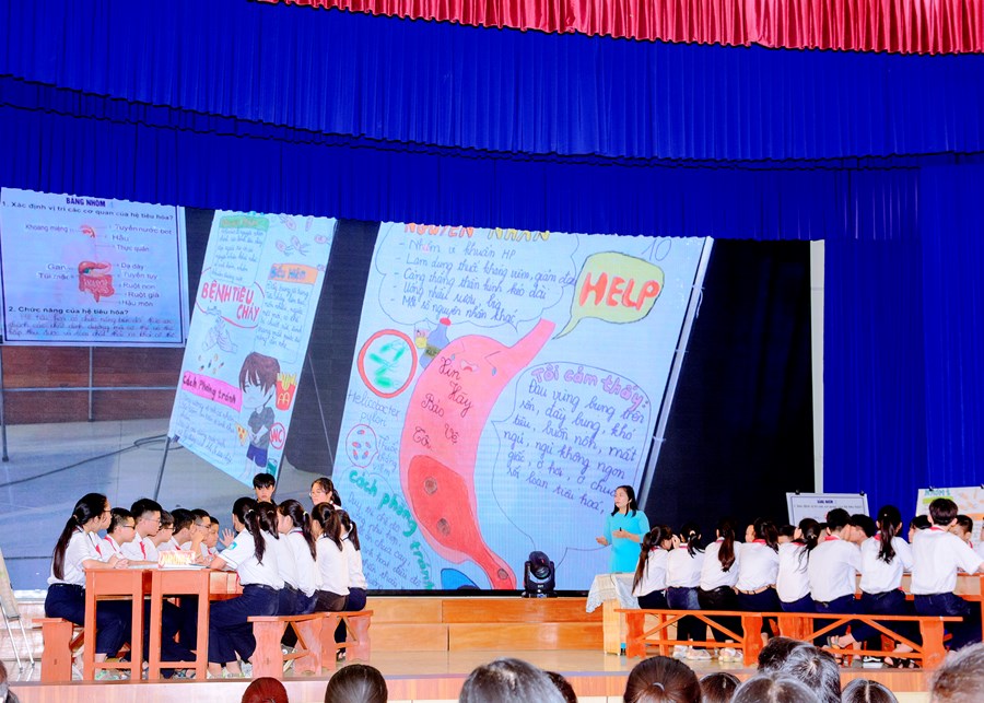Tại Hội thảo, cô Tạ Thị Cảnh, trường THCS Thị Trấn và các em học sinh lớp 8B3 lên lớp Bài 32: Dinh dưỡng và tiêu hóa ở người (tiết thứ 4).