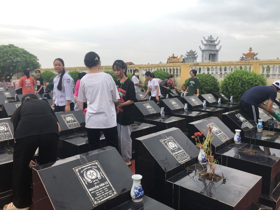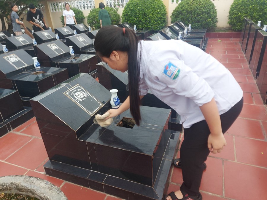 Dọn vệ sinh nghĩa trang liệt sĩ không những để giáo dục đạo lý “uống nước nhớ nguồn”, mà còn góp phần nuôi dưỡng lòng yêu nước và tự hào về truyền thống dân tộc cho các em học sinh. Đồng thời tạo động lực quyết tâm học tập, phấn đấu vươn lên của học sinh để trở thành con ngoan, trò giỏi.