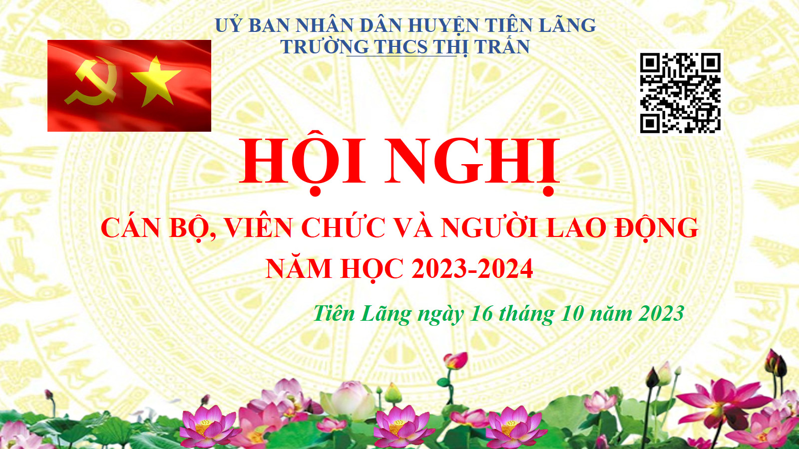 Thực hiện Nghị định số 04/2015/NĐ-CP ngày 09/01/2015 của Chính phủ về việc thực hiện dân chủ trong hoạt động của cơ quan hành chính Nhà nước và đơn vị sự nghiệp công lập; Thông tư số 01/2016/TT-BNV ngày 13/01/2016 của Bộ Nội vụ hướng dẫn 1 số nội dung của Nghị định số 04/2015/NĐ-CP ngày 09/01/2015; Thực hiện Kế hoạch công tác tháng 10 năm 2023, chiều ngày 16/10/2023 trường THCS thị trấn Tiên Lãng tổ chức thành công Hội nghị CB,VC - người lao động năm học 2023 – 2024.